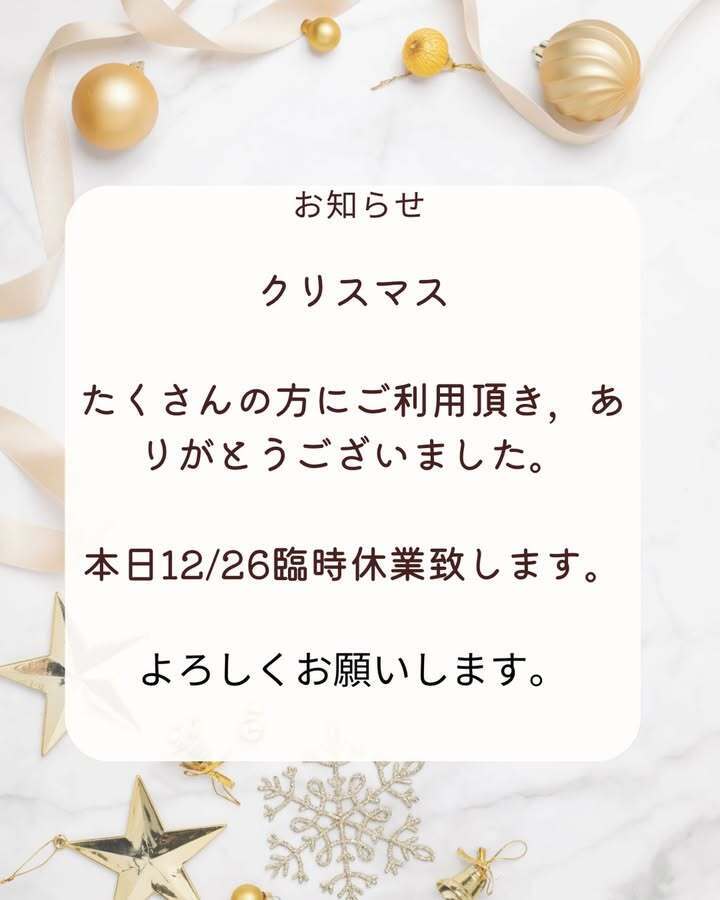 本日12/26,臨時休業致します。